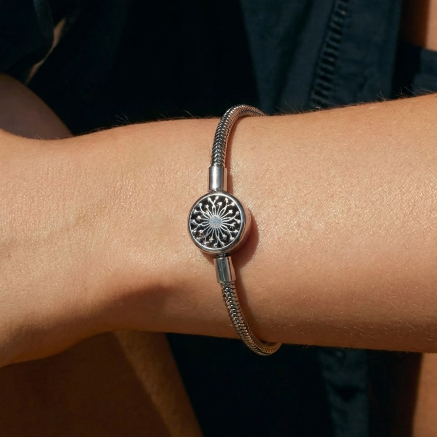 Let your mind unwind wherever you are with a timeless locket snake-chain bracelet. The lid of the locket can be easily opened for use as an essential oil diffuser.
